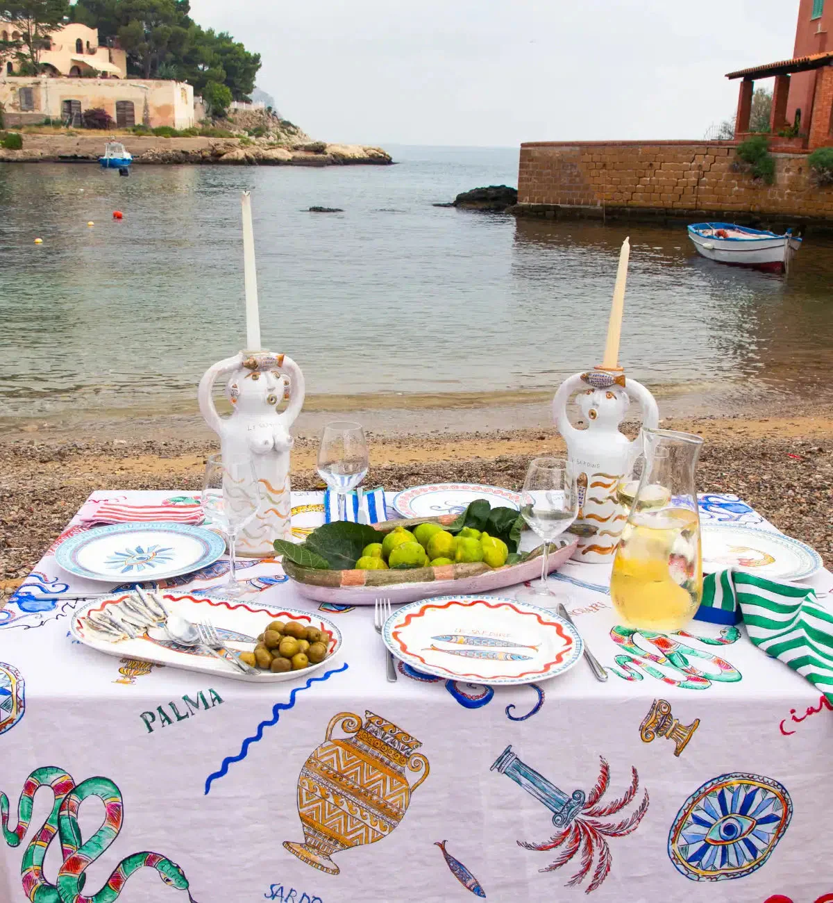 Meet 'A Sadara' - lovingly hand-crafted, painted and glazed by Sicilian Artist Patrizia Italiano, these one-off pieces have been designed as part of our Il Mediterraneo collection. Created to encourage you to slow down, indulge the senses and share connections and experiences with loved ones. Coastal references, oceanic colour and symbols synonymous with the sea combine to create a cheerful and sunny collection, designed to transport you to carefree and barefoot days by the sea.