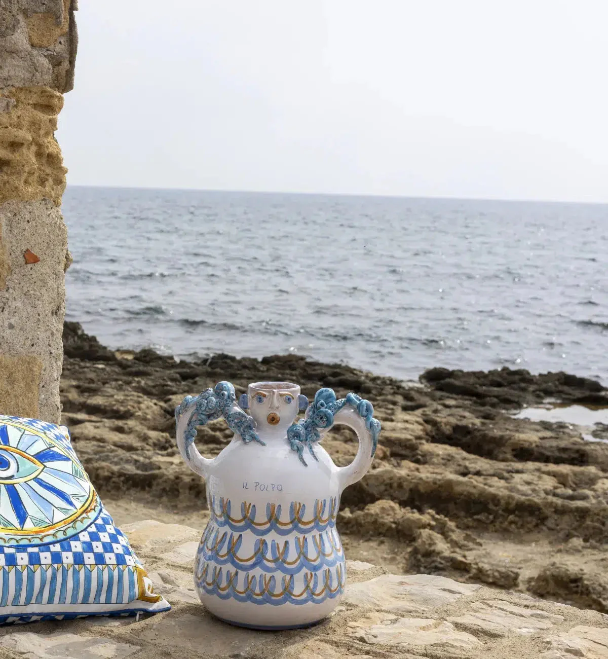 Meet 'La Polpess' - lovingly hand-crafted, painted and glazed by Sicilian Artist Patrizia Italiano, these one-off pieces have been designed as part of our Il Mediterraneo collection. Created to encourage you to slow down, indulge the senses and share connections and experiences with loved ones. Coastal references, oceanic colour and symbols synonymous with the sea combine to create a cheerful and sunny collection, designed to transport you to carefree and barefoot days by the sea.