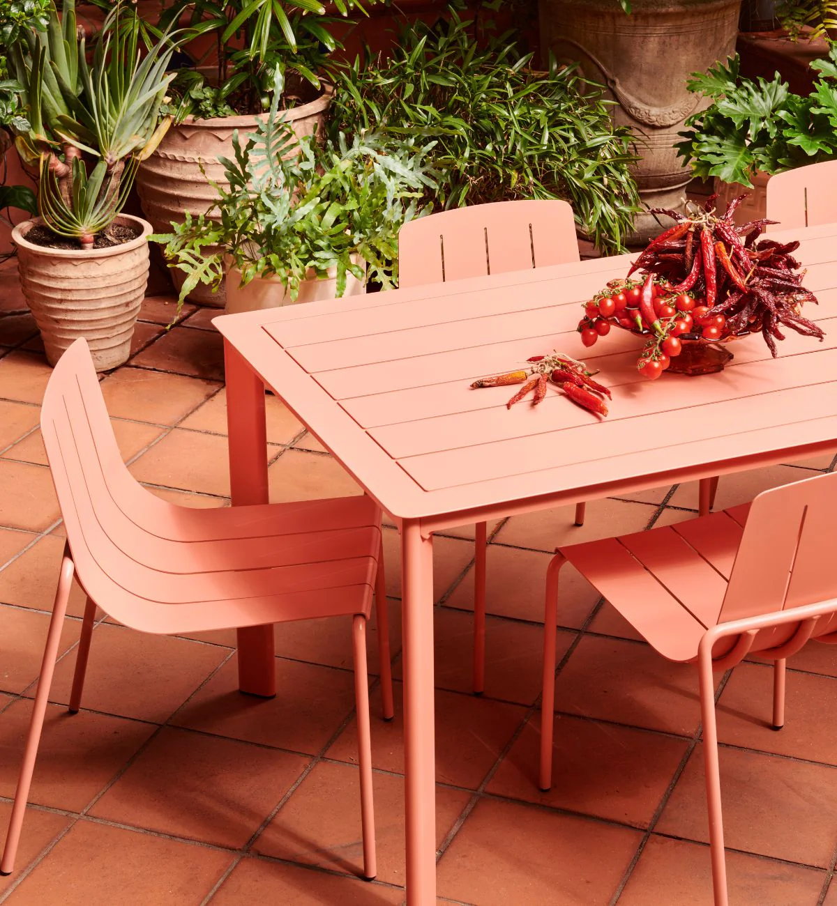 Constructed in all-weather aluminium and powder coated in a super fresh palette, this collection has been designed to mix or match with our Slim Dining Chairs.